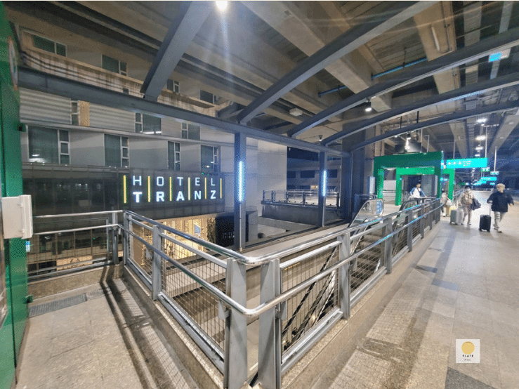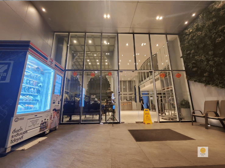 Hotel Tranz的大廳小小的,大門需要房卡或由櫃檯開啟才能進入,自動販賣機設置在1F大門外,不過附近走路5分鐘就有7-11。