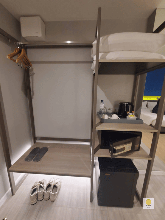 ▼房間簡單明亮,打開二個行李箱也不覺得擁擠,但是床板材質偏廉價,睡起來沒什麼支撐力